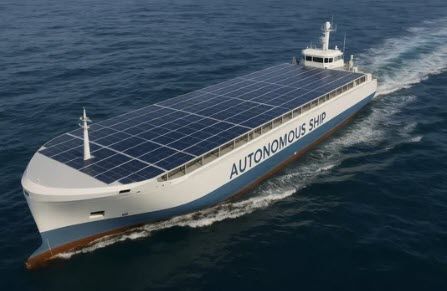 - The Blue Marlin Inland Solar cargo ship is already in operation. It is a hybrid ship that uses solar power to bring their emissions down considerably. Also, can be powered on solar alone for limited time. So the short answer is yes. These ideas are bold and they are realistic. The 106,000 HP engine that runs container ships is a huge ask to replace. Using ideas that reduce these emissions is the least we can do. Are we doing more? Yes.